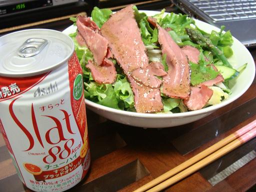 アスパラ茹でて~新タマネギ水にさらして~グリーンカールとレタスをWづかい~トマトきざんで~ビーフパストラミをアクセントにして~クリチまぶして~